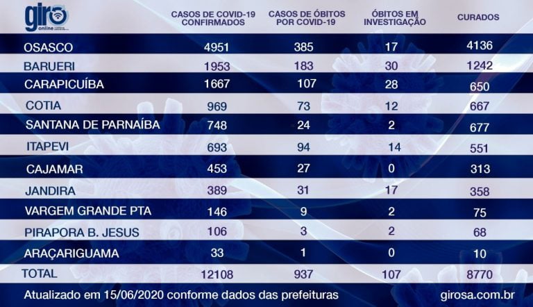 Os dados foram atualizados nos boletins oficiais das prefeituras.