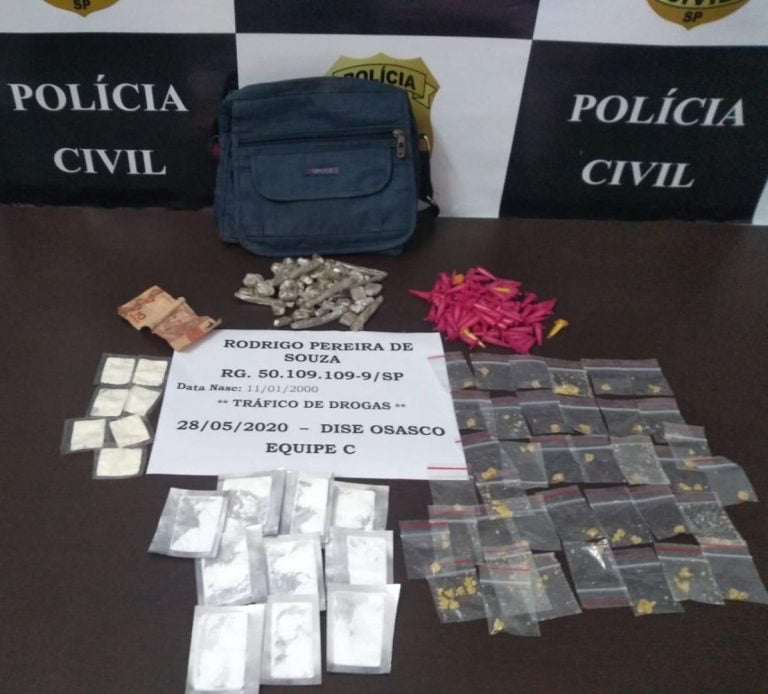 A Delegacia de Investigação sobre Entorpecentes (DISE) da Seccional Osasco prendeu, na tarde desta quinta-feira (28), um jovem por tráfico de drogas, na rua Veneza, no Veloso em Osasco. Suspeito estava de liberdade provisória após cometer um roubo ano passado na Rodovia Raposo Tavares.