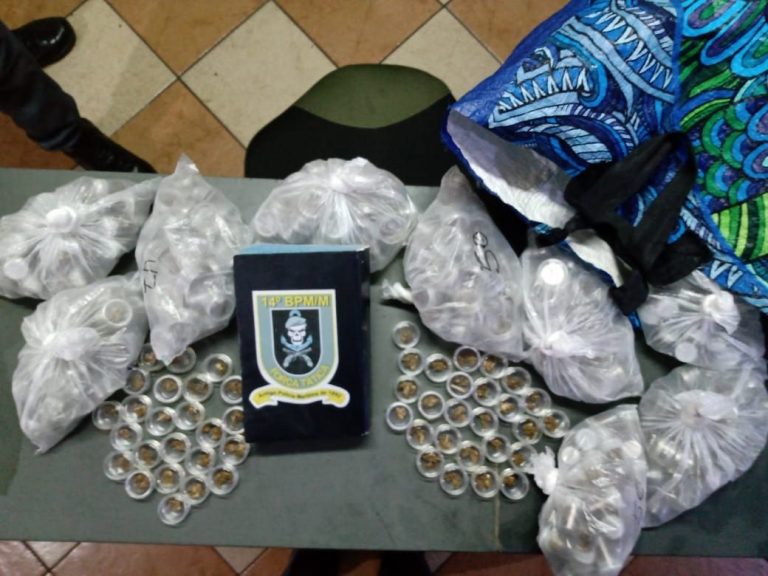 Um homem e uma mulher foram presos em flagrante com 497 porções de maconha por agentes da Força Tática do 14º Batalhão de Polícia Metropolitano da Polícia Militar (14°BPMM/PMSP), no Jardim Padroeira, em Osasco. O caso aconteceu na noite de segunda-feira (5). Segundo os policiais, durante patrulhamento na operação “São Paulo Mais Segura”, os agentes observaram um casal caminhando, carregando uma sacola grande do tipo de “feira”. Quando notaram a presença dos agentes, demonstraram certo nervosismo.