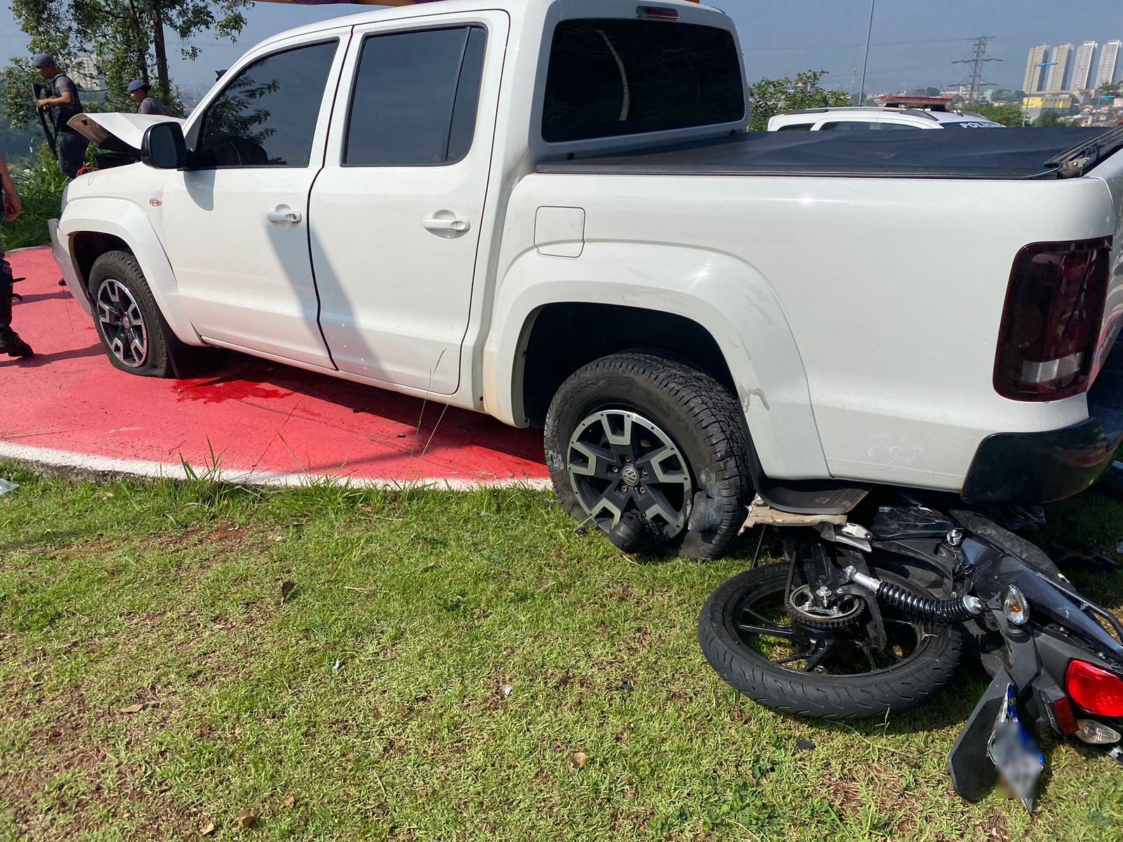 Na colisão, a moto e o motociclista foram parar embaixo do veículo. Ele foi socorrido ao PS Municipal onde não resistiu e evoluiu a óbito. Segundo a Polícia Rodoviária o garupa da moto teve múltiplas faturas e permanece internado em estado grave no Hospital Geral de Itapevi.