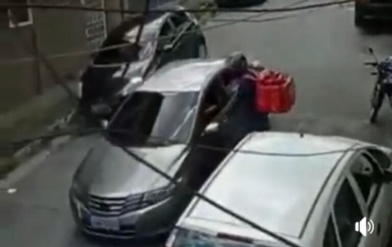 O suspeito coloca a mão dentro do carro e consegue pegar o relógio e óculos da vítima. Na sequência, surge um homem, sem camisa, que enfrenta o criminoso. A pessoa que grava o vídeo grita da varanda pedindo para o criminoso ir embora.