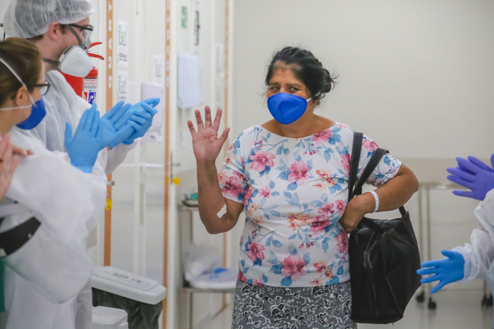Uma das pacientes pertence ao grupo risco por ter mais de 60 anos. Identificada por Dona Tereza, a senhora recebeu alta na tarde de segunda-feira (18) depois de ficar internada, saindo sob aplausos de toda a equipe médica da unidade por ter vencido a batalha contra o coronavirus. Assim como ela, mais 4 pacientes também foram curados do Covid-19.