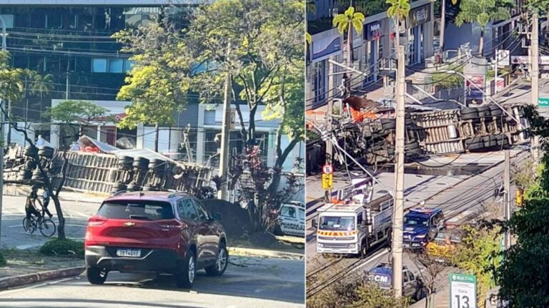 Segundo a prefeitura, a Defesa Civil contabilizou a queda de 14 árvores, grande parte no bairro Alphaville, além de três postes de energia elétrica. Via