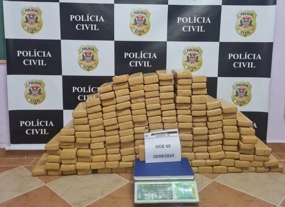 Além dos 126kg de maconha, também foram apreendidas uma balança de precisão de até 25kg e uma faca de corte.