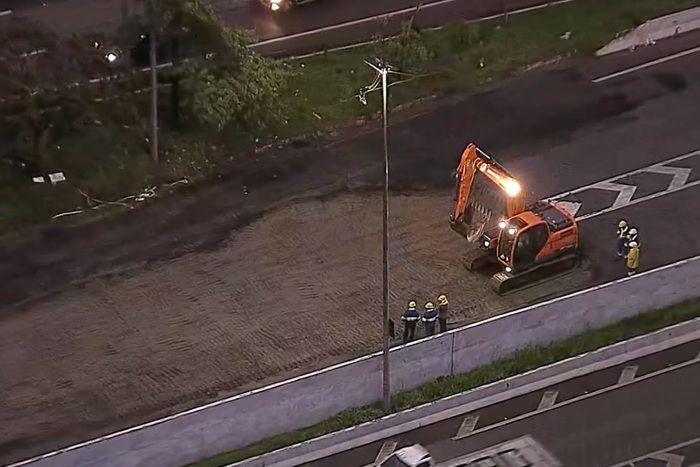 Sabesp comunicou que as três faixas da pista central da Marginal Tietê ficarão interditadas por 30 dias. Cratera reabriu no domingo (11) no mesmo local