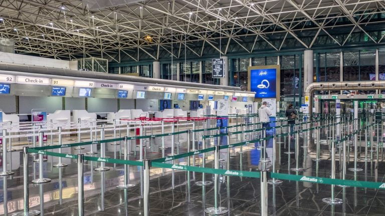 Aeroporto de Roma, totalmente vazio. Nas últimas 24 horas morreram 427 pessoas na Itália (Foto: News Sky)