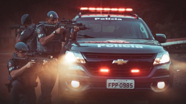 Os suspeitos foram identificados após o carro ser localizado pelo sistema de câmeras inteligentes da PM. Foram apreendidos um revólver calibre .38, touca ninja, três