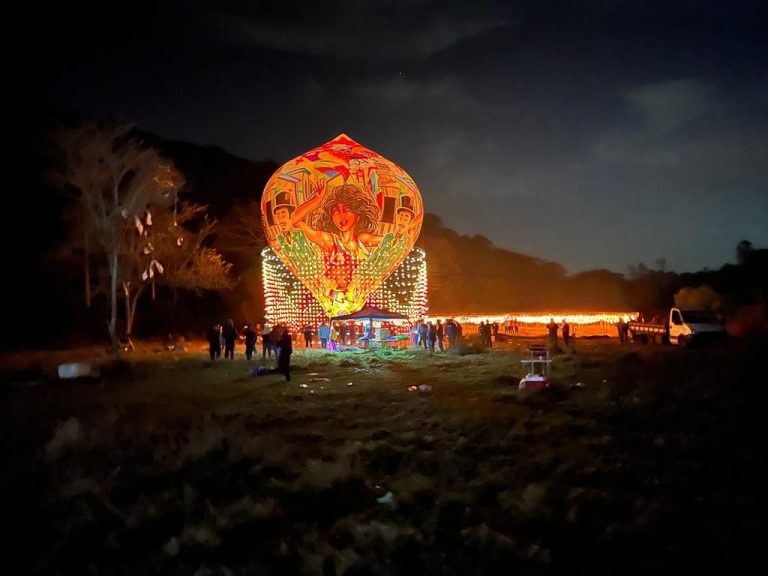 No sítio localizado no Quatro Encruzilhadas, agentes encontraram cerca de 150 pessoas e avistaram um balão no ar e outros dois sendo levantados