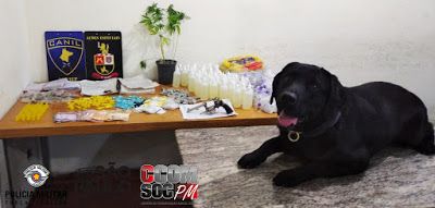 Na ação, foram apreendidos porções de maconha, cocaína, lança-perfume e uma arma