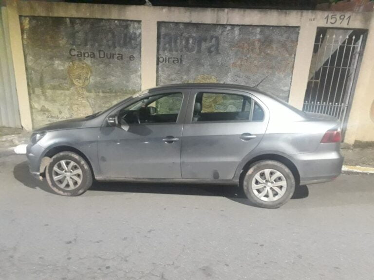 Ao ver a aproximação da viatura, o suspeitou abandonou o veículo e tentou fugir, mas acabou preso após uma breve perseguição; Voyage na cor cinza
