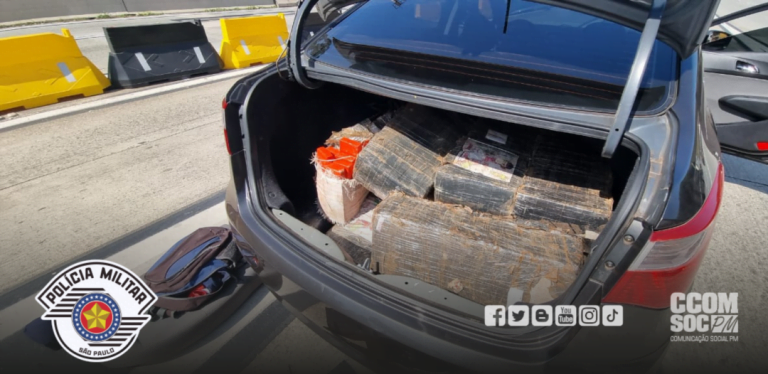 Policiais do 6º Batalhão de Polícia Rodoviária também descobriram que o automóvel que transportava os entorpecentes estava com a placa adulterada