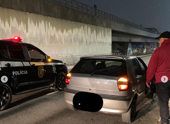 De acordo com informações divulgadas pela Polícia Militar, a equipe avistou dois indivíduos dentro de uma loja de celulares, usando capacete e uma bolsa de