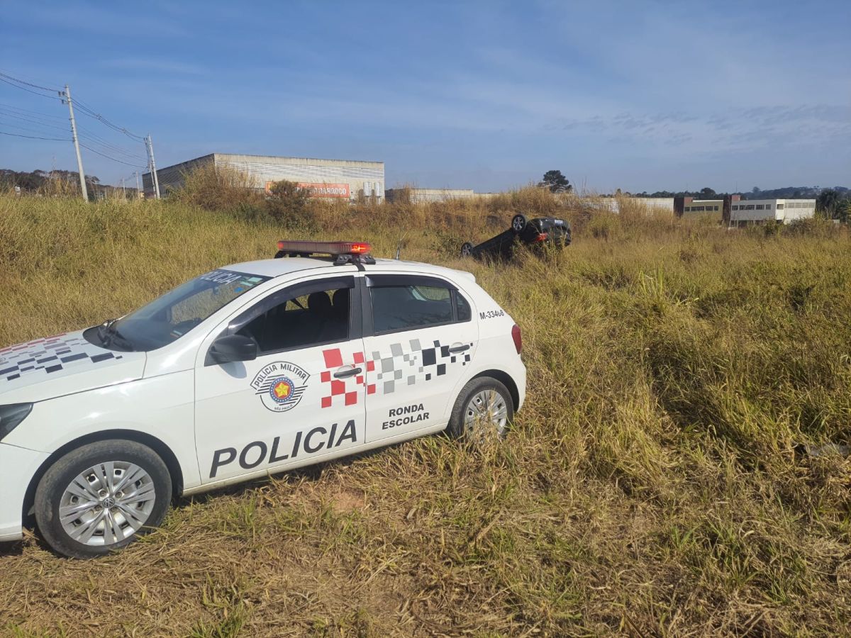 Durante fuga, suspeito capota veículo e acaba preso pela PM